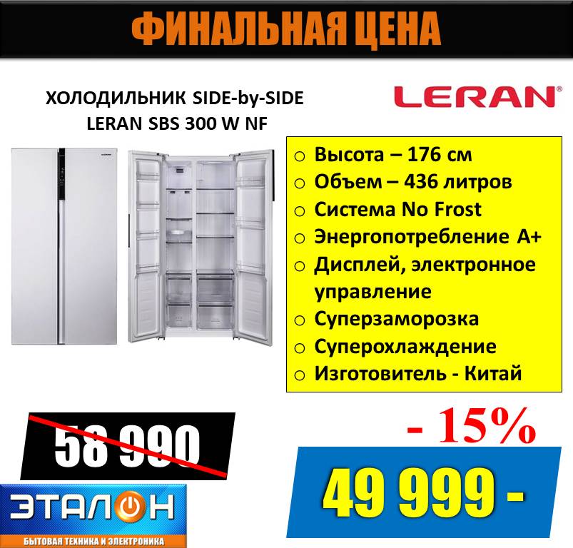 Холодильник SIDE-by-SIDE LERAN SBS 300 W NF